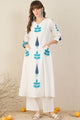 Dhiyona IE Floral Printed Panelled V-Neck Mirror Work A-Line Pure Cotton Kurta with Palazzos