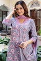 Dhiyona IE Floral Printed Panelled V-Neck Pure Cotton Kurta With Trousers & Dupatta