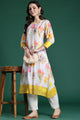 Dhiyona IE Floral Printed Pleated Pure Cotton A-Line Kurta with Trousers