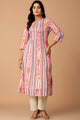 Dhiyona IE Floral Printed Pleated Pure Cotton A-Line Kurta with Trousers
