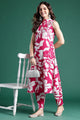 Dhiyona IE Floral Printed Pleated Pure Cotton Kurta with Trousers