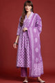 Dhiyona IE Floral Printed Pleated Pure Cotton Kurta With Trousers & Dupatta