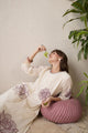 Dhiyona IE Floral Printed Pleated Round Neck Pure Cotton A-Line Kurta With Trousers