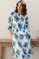 Dhiyona IE Floral Printed Pleated Round Neck Pure Cotton Straight Kurta With Trouser