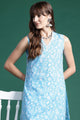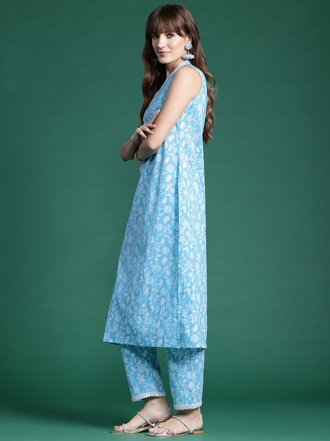 - Blue floral print Tunic, has a v-neck, sleeveless