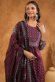 Maroon, white printed kurta with trousers and dupatta