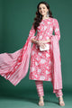 Pink printed Kurta with Trousers with dupatta