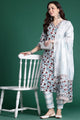 White printed Kurta with Trousers with dupatta