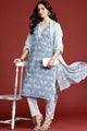 Blue printed Kurta with Trousers with dupatta