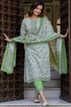 Green and white printed kurta with trousers and dupatta