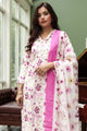 Cream & pink printed kurta with trousers & dupatta