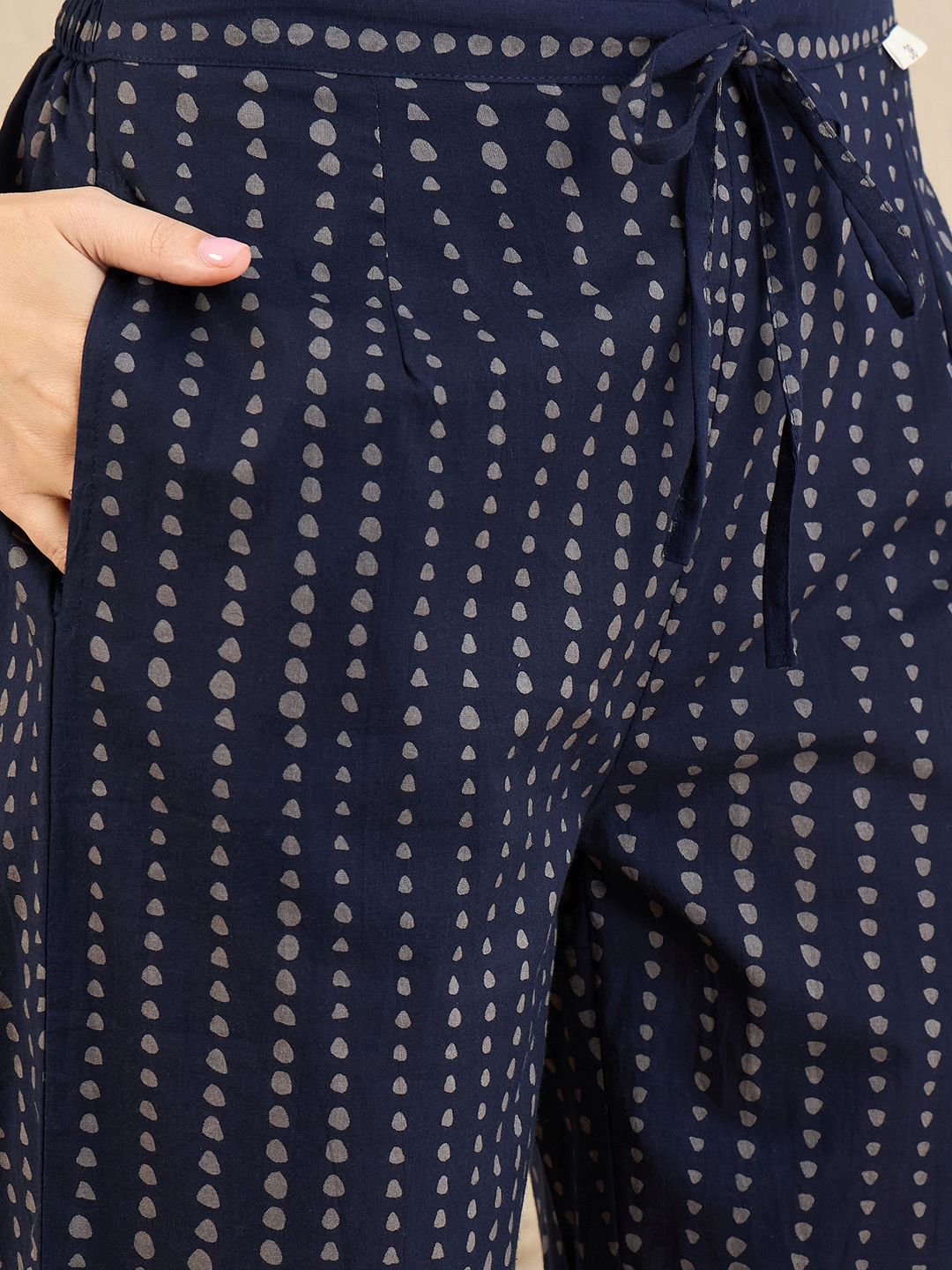 Navy blue & beige printed Kurta with Trousers with dupatta