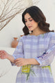 Lavender printed tunic, has a round neck and three quarter sleeves, secured with slip-on closure