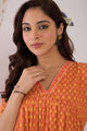 Orange coloured printed co-ords has tunic and trouser