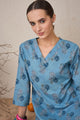 Dhiyona IE Floral Printed Pure Cotton V-Neck Straight Kurta With Trousers