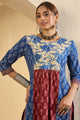 Maroon, blue and beige printed Kurta with Trousers