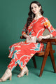 Orange printed Kurta with Trousers