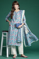 Dhiyona IE Floral Printed Regular Pure Cotton Kurta with Trousers & Dupatta