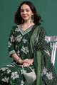 Green printed Kurta with Trousers with dupatta