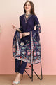 Dhiyona IE Floral Printed Regular Thread Work Kurta with Trousers & Dupatta