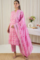 Pink and white printed Kurta with Trousers and dupatta