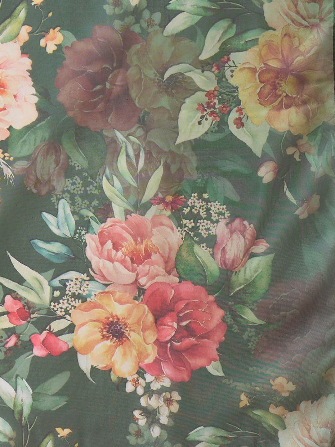 Dhiyona IE Floral Printed Round Neck Cotton Straight Kurta With Trousers & Dupatta