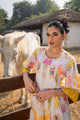 Cream-coloured and yellow and pink printed kurta with trousers