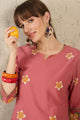 Dhiyona IE Floral Printed Round Neck Sequinned Pure Cotton Kurta With Trousers