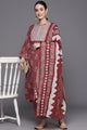 Maroon printed Kurta with Trousers with dupatta