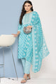 Dhiyona IE Floral Printed Sequinned Pure Cotton Straight Kurta With Trousers & Dupatta