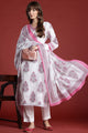 Dhiyona IE Floral Printed Sequinned V-Neck Pure Cotton Kurta with Trousers & Dupatta