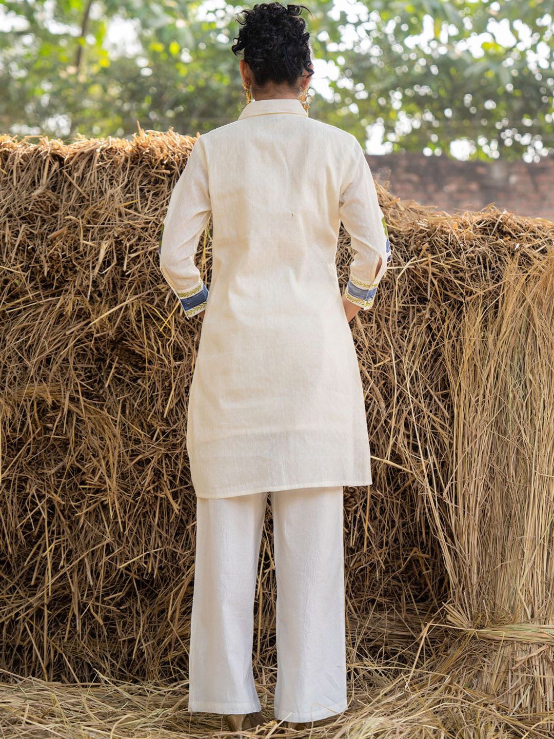 Dhiyona IE Floral Printed Shirt Collar Pure Cotton Tunic With Trouser