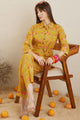 Mustard-yellow and pink printed trousers ,has slip on closure with 2 pocket