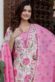Dhiyona IE Floral Printed Square Neck Pure Cotton Straight Kurta With Trousers & Dupatta