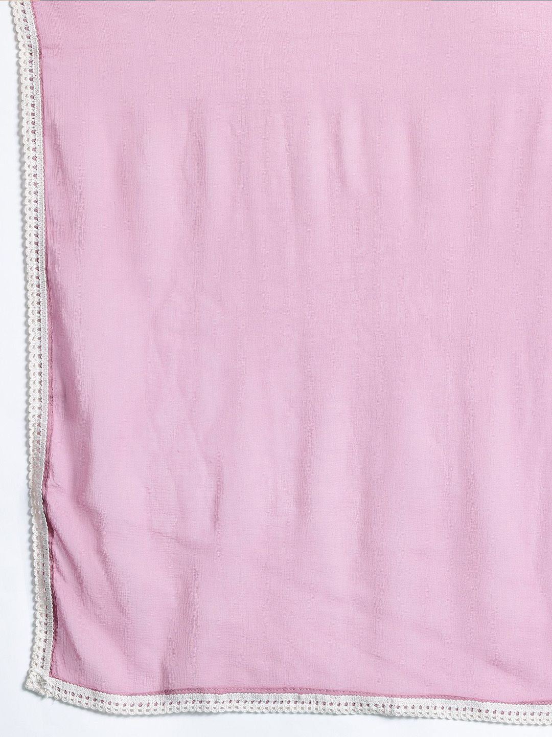 Dhiyona IE Floral Printed Straight Beads and Stones Linen Kurta With Trousers And Dupatta