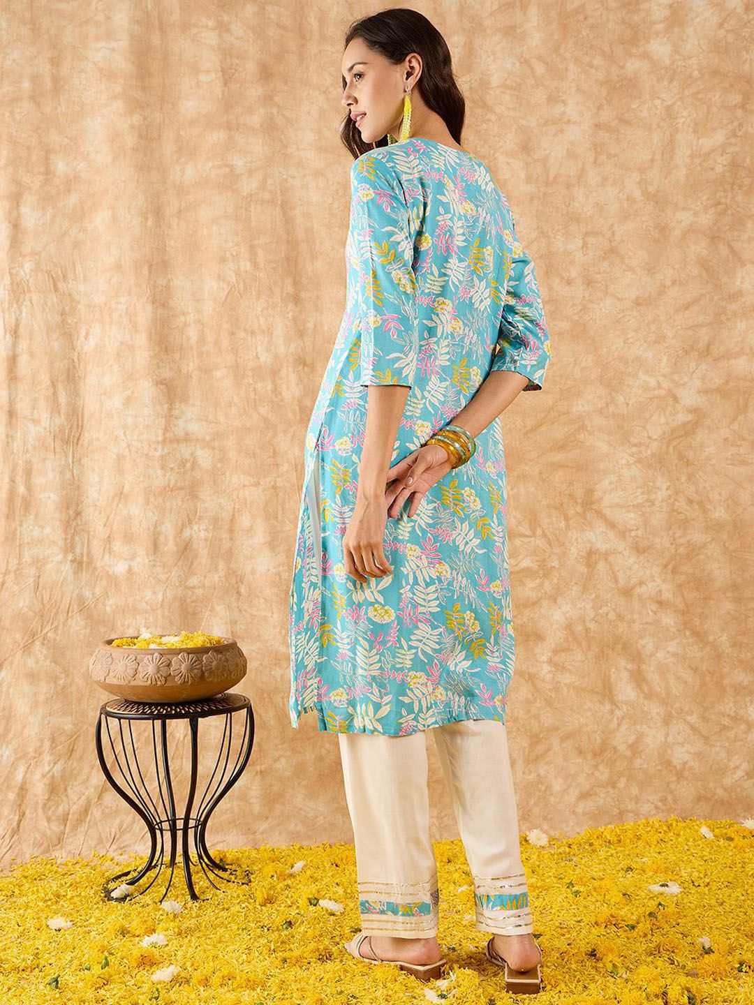Dhiyona IE Floral Printed Straight Kurta with Trousers