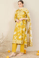 Dhiyona IE Floral Printed Straight Pure Cotton Kurta With Trousers & Dupatta