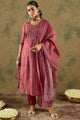Dhiyona IE Floral Printed Thread Work Chanderi Silk Straight Kurta with Trouser & Dupatta