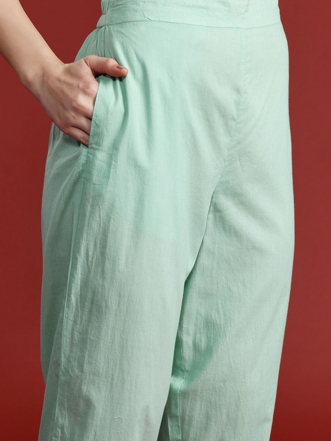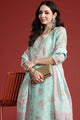 Dhiyona IE Floral Printed Thread Work Linen Kurta with Trousers & With Dupatta