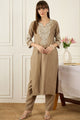 Dhiyona IE Floral Printed Thread Work Pure Cotton Kurta With Palazzos