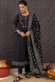 Black embroidered Kurta with Trousers with dupatta