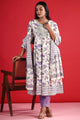 Off white and lavender coloured printed kurta with trousers with dupatta