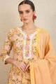 Dhiyona IE Floral Printed Thread Work Pure Cotton Straight Kurta With Trousers & Dupatta