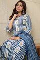 Dhiyona IE Floral Printed Tie-Up Neck Pure Cotton Straight Kurta With Trousers & Dupatta