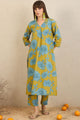 Dhiyona IE Floral Printed V-Neck A-Line Kurta with Trousers