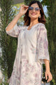 Dhiyona IE Floral Printed V Neck A Line Pure Cotton Kurta With Trousers