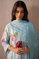 Blue, white and pink printed Kurta with Trousers & dupatta