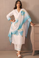 Dhiyona IE Floral Printed V-Neck Linen Straight Kurta With Trousers & Dupatta