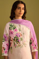 Dhiyona IE Floral Printed V-Neck Linen Straight Kurta With Trousers & Dupatta