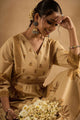 Dhiyona IE Floral Printed V-Neck Pleated Pure Cotton A-Line Kurta With Trouser